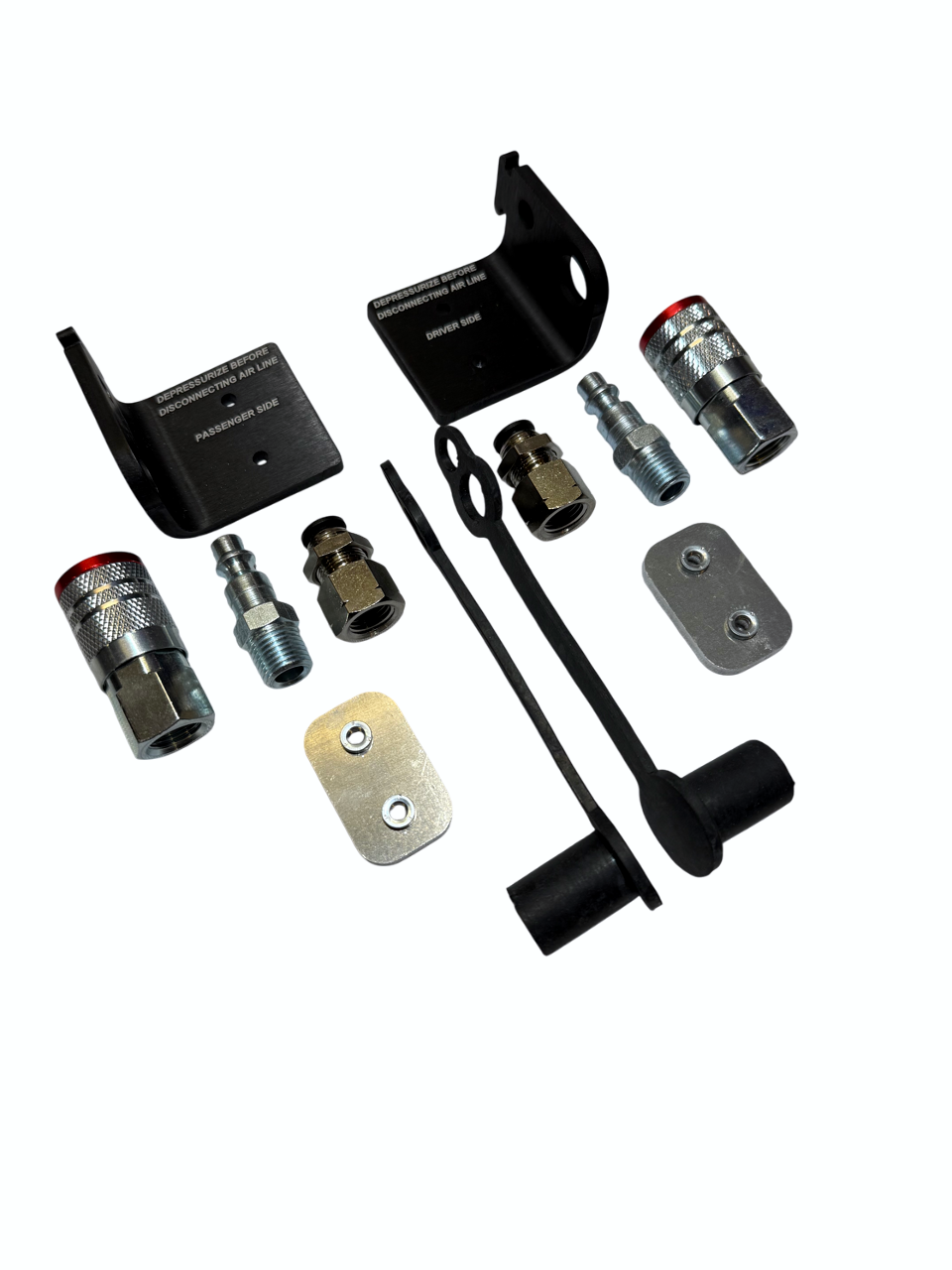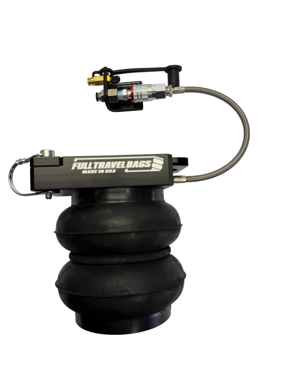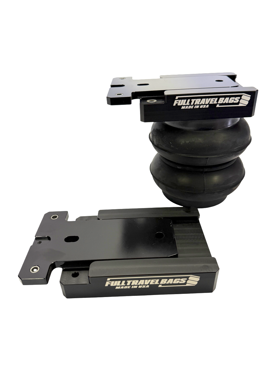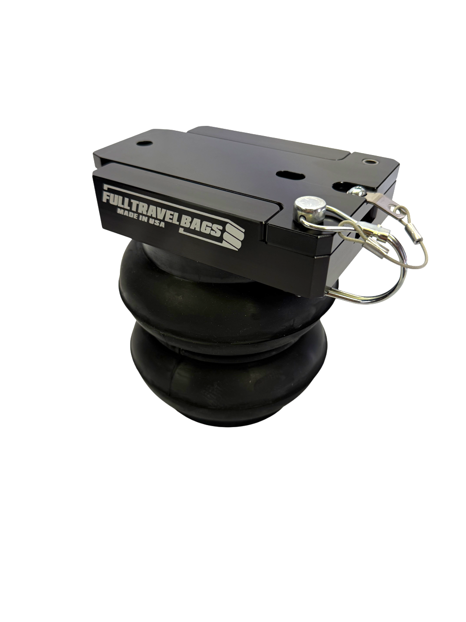 Ram 2500 owners can now experience the same proven performance as our Ford and GM customers! A CNC milled and cerakoted receiver is bolted to the factory bump stop location and will accept either the airbag assembly OR the bump stop assembly. This system is designed to function with 1"- 2" lift rear coil springs or factory Power Wagons. However, higher lifts can be accommodated with shims and longer mounting hardware (see the image with red arrows for reference and please contact us upon purchase so we can provide you with the proper amount of shims for your lift height). Simply swap the airbag assembly with the bump stop assembly (tools are not required) and in a matter of seconds you will have functional compression travel at your disposal. The bump stop receiver will accept either the factory bump stop or Thuren's boogie bump (TF-BBSTO-PAIR). Installation time is between 1-2 hours and requires basic tools (wrenches, drill, floor jack).